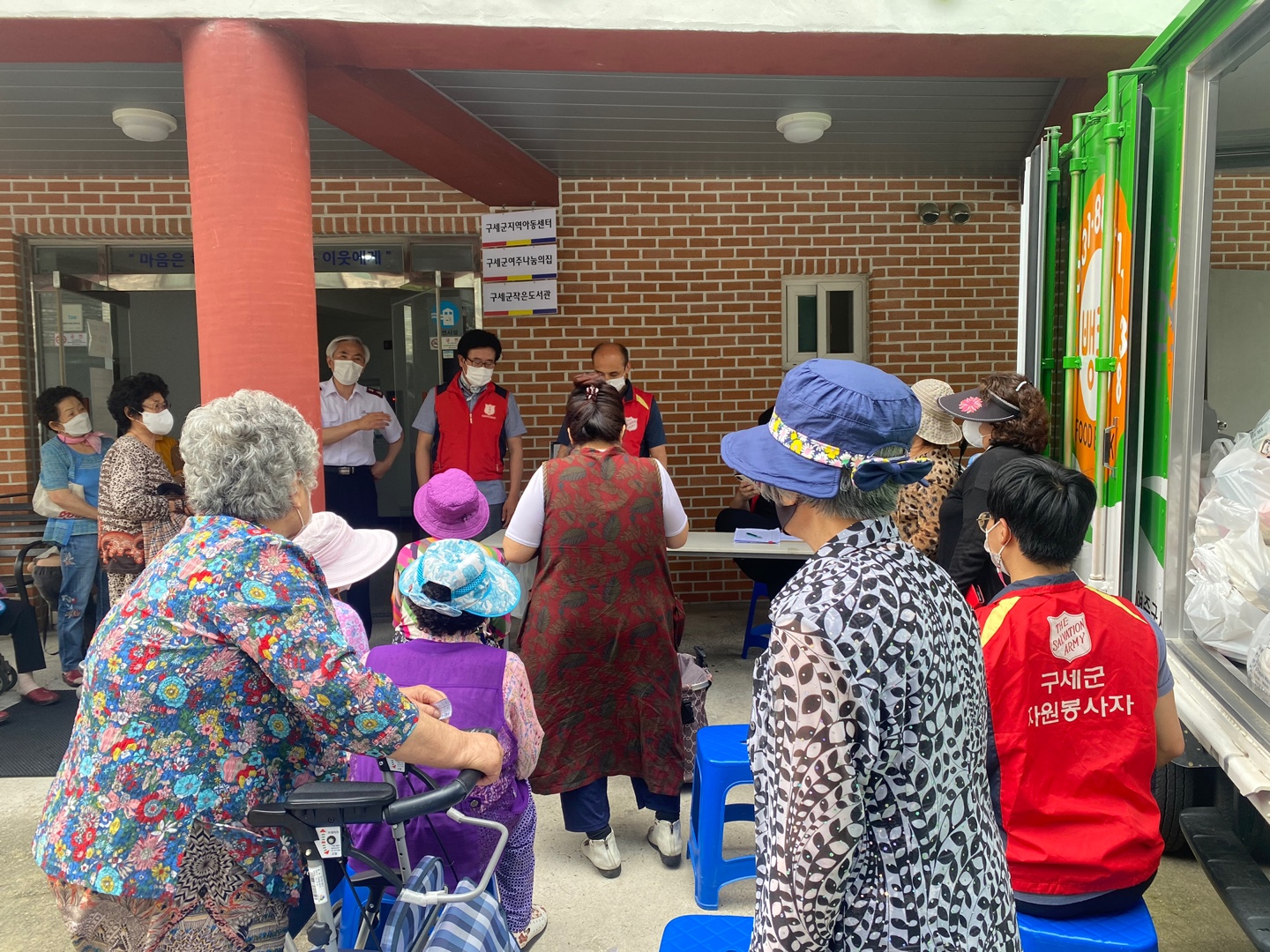 지난 11일 구세군여주나눔의집 주차장 앞에서 오학동 이동푸드마켓을 열었습니다. ^^ 이 날 저소득 소외계층 약 101명에게 식료품 및 생필품을 전달하였습니다. 특히 이번 행사에는 이대직 전 여주시부시장님께서 참석하여 물품 배분 봉사를 함께 해주셨습니다. 함께해주신 부시장님께 깊은 감사의 말씀을 드리면서 무사히 행사를 마칠 수 있었습니다.