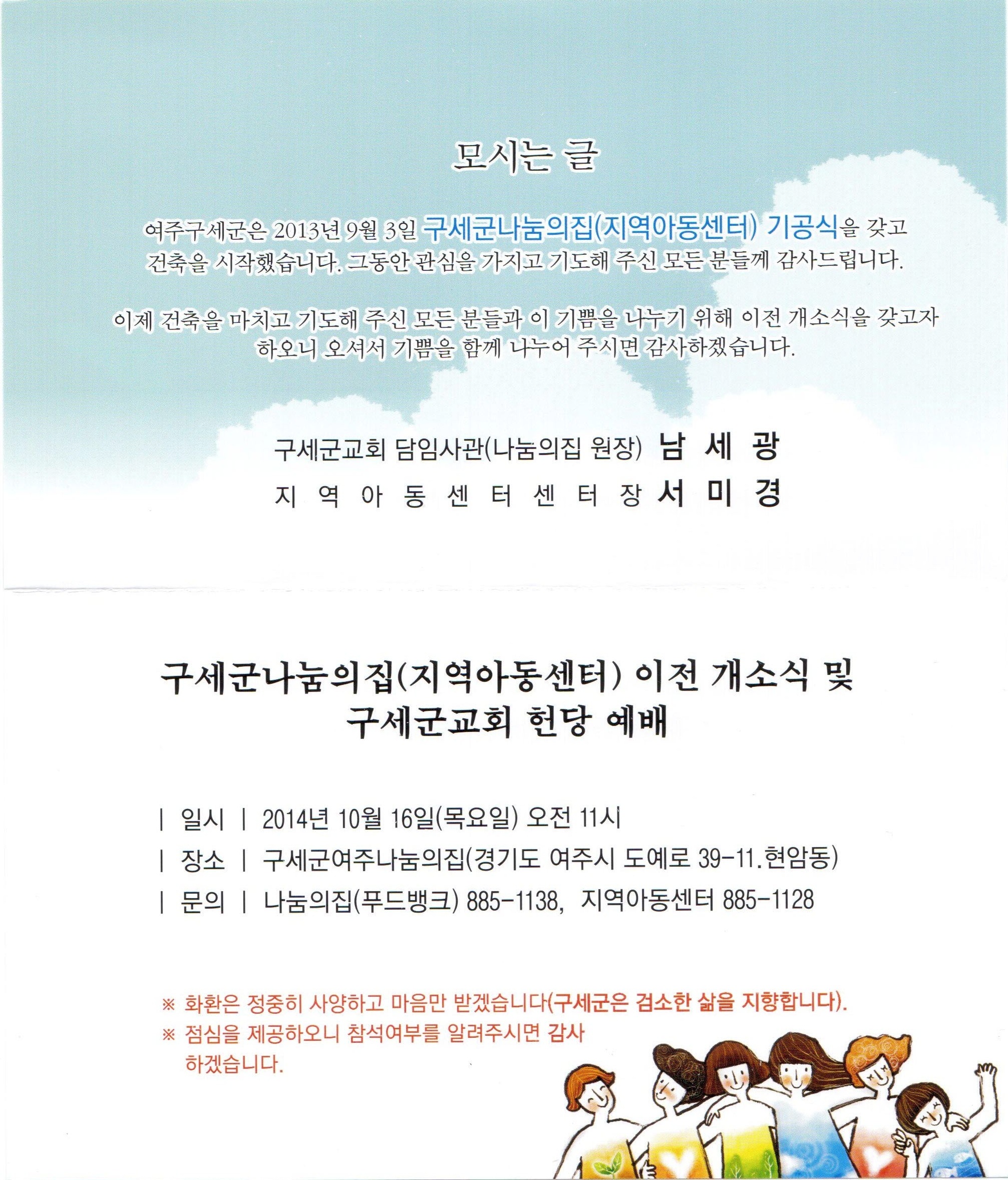 [공지] 여주구세군(나눔의집, 여주지역아동센터, 교회) 이전개소식